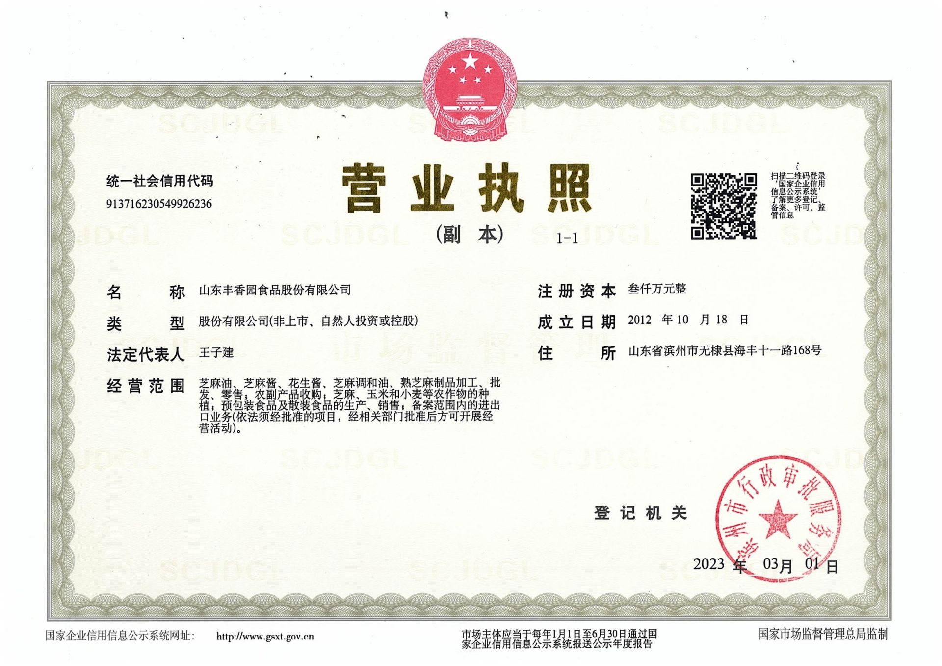 山東豐香園食品股份有限公司位于無棣縣西城工業(yè)園,成立于2012年,注冊資本3000萬元,員工60多人,年銷售收入8000多萬元,是“國家高新技術(shù)企業(yè)”、“中國好糧油”示范企業(yè)、“食安山東”示范生產(chǎn)加工企業(yè),公司集綠色、有機芝麻食品標準化、生產(chǎn)加工、研發(fā)、出口銷售為一體的山東省農(nóng)業(yè)產(chǎn)業(yè)化“重點龍頭企業(yè)”。